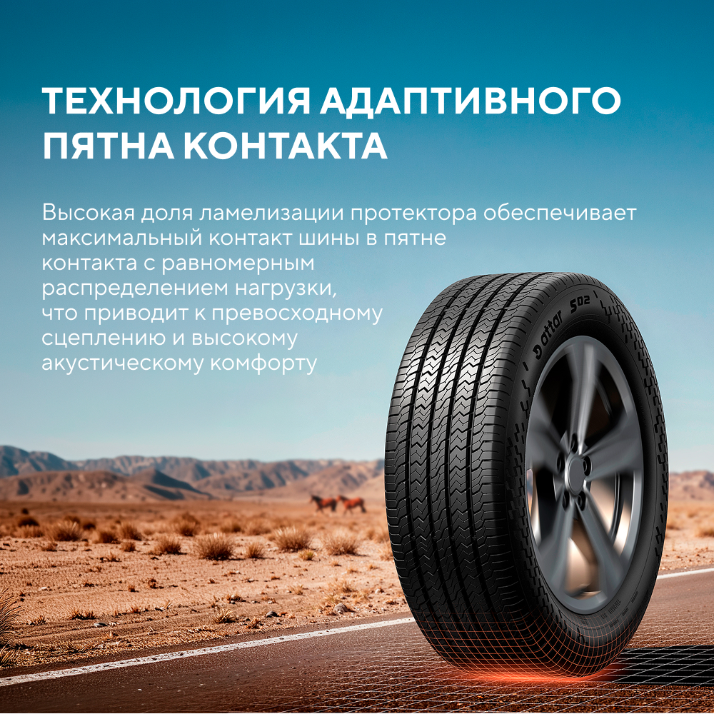Attar S02 разработана для водителей, которым важна универсальность: уверенное движение в городе, на трассе и на лёгком бездорожье. Конструкция шины позволяет сохранять контроль над автомобилем даже на мокром покрытии и при резких манёврах.